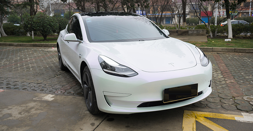 特斯拉model3 珍珠白改色3M改色膜